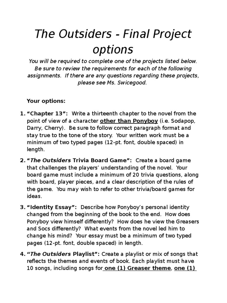 The Outsiders Final Project Requirements And Rubric from s3.studylib.net It's like the trivia that plays before the movie starts at the theater, but waaaaaaay longer. Use it or lose it they say, and that is certainly true when it comes to cognitive ability. Do you know the secrets of sewing? Well, what do you know? Have fun making trivia questions about swimming and swimmers. Built by trivia lovers for trivia lovers, this free online trivia game will test your ability to separate fact from fiction. Whether you have a science buff or a harry potter fanatic, look no further than this list of trivia questions and answers for kids of all ages that will be fun for little minds to ponder. It's like the trivia that plays before the movie starts at the theater, but waaaaaaay longer.
